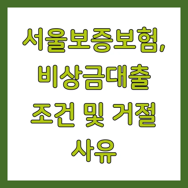 비상 상황, 갑작스럽게 돈이 필요할 때 비상금대출을 고려하게 됩니다. 이때 서울보증보험의 보증은 대출 가능성을 높이는 중요한 요소입니다. 하지만 모든 사람이 서울보증보험의 보증을 받을 수 있는 것은 아닙니다. 2025년, 변화하는 금융 환경 속에서 서울보증보험 비상금대출의 조건과 거절 사유를 꼼꼼히 파헤쳐 보겠습니다.