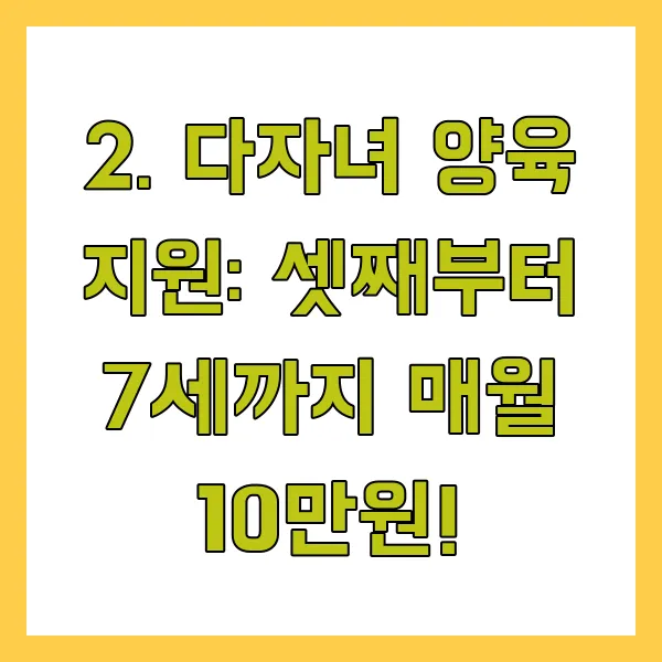 2. 다자녀 양육 지원: 셋째부터 7세까지 매월 10만원!