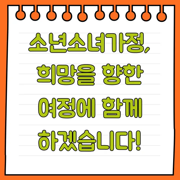 소년소녀가정 지원 정책은 단순한 경제적 지원을 넘어, 아이들이 건강하게 성장하고 자립할 수 있도록 돕는 것을 목표로 합니다. 이 글을 통해 소년소녀가정 지원에 대한 이해를 높이고, 필요한 도움을 받을 수 있기를 바랍니다. 어려움에 처한 소년소녀가정에게 희망을 전하고, 더 나은 미래를 함께 만들어갑시다!